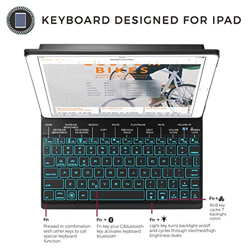 "Title: YEKBEE iPad Keyboard case cover with PU leather wireless bluetooth keyboard 7-color backlit with Folio protection Ultra Slim light Weight Auto Sleep/Wake for iPad Air 1 new iPad 2017 tablet (Black)