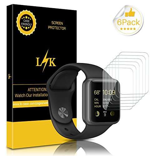 "Title: [6 Pack] Apple Watch Screen Protector (42mm Series 3/2/1 Compatible), LK Liquid Skin [Full Coverage] [Anti-Bubble] HD Clear 9H Hardness With Lifetime Replacement Warranty
