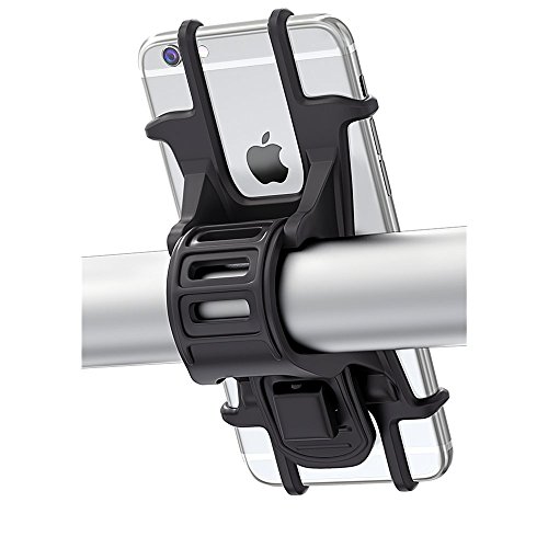"Title: Bike Mount, Bovon Universal Bicycle Phone Holder, Adjustable Silicone Handlebar Crack for iPhone X/6/7/8 Plus, Samsung Galaxy S9/S8 Plus, 4.5"-6.0" phones, Ideal for Road Mountain Bikes and Motorcycle