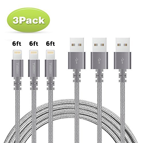 "Title: Lightning cable 6FT TIMMY 3Pack Nylon Braided IPhone Charger certified to charging Cable with charging indictor powerline for iPhone 8/X/5/5C/5S/6S/6S PLUS/7/7 plus, iPad Air, and more (Gray)