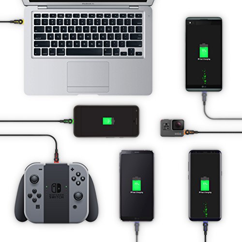 Get it right every time with the new reversible USB-C connector. Worlds sleekest tip, only 4.75mm enabling use with ANY protective case and ridged side-grip for superior handling haptics. Color-coded to differentiate use between family members or devices. Including cable organizers for adjusting the perfect length or easy storage.