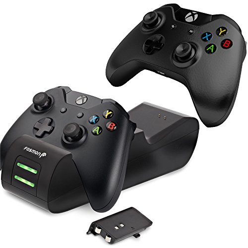 "Title: Fosmon Xbox One / One S / One X Controller Charger, [Dual Slot] High Speed Docking / Charging Station with 2 x 1000mAh Rechargeable Battery Packs