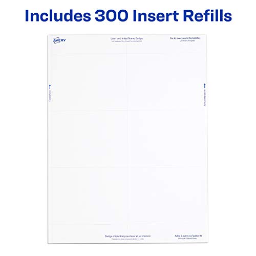 Refill resupplies Avery Name Badge Kits so you can make more professional-looking name badges with inkjet or laser printers. Ideal for meetings, seminars, special events, conventions and more. Each sheet is microperforated to tear cleanly, leaving smooth edges. Avery offers many easy-to-use templates for Microsoft Word and other popular software programs.