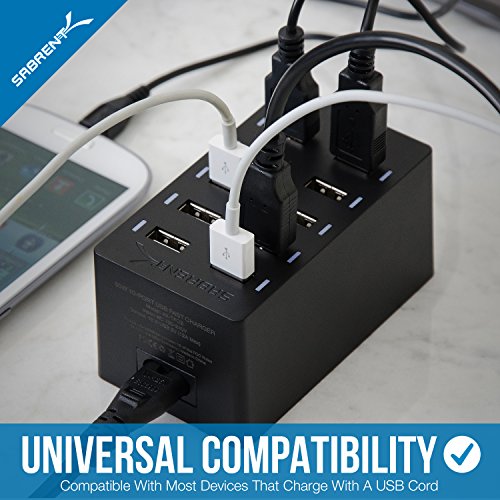 Charge up to 10 USB devices simultaneously from one wall outlet. Simply connect any USB mobile device, such as an iPad, iPhone, iPod, Tablet PC, Smartphone, a Wireless Hotspot etc. and quickly charge all your devices from one place. The Sabrent USB Charger is durable and lightweight and works great at home or at the office. This is a must-have travel companion to charge all your power-hungry devices.