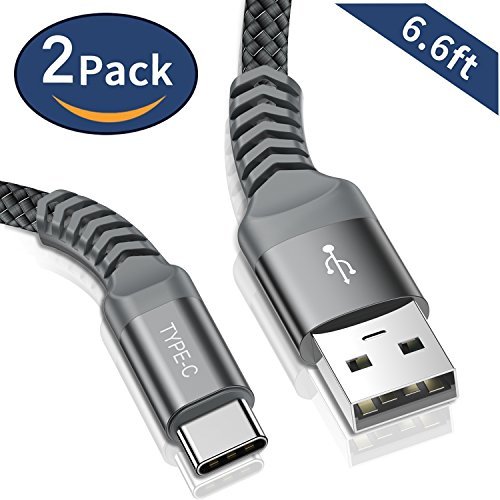 "Title: USB Type C Cable, iAlegant USB C Cable (2-PACK 6.6ft) Nylon Braided Fast Charger Cord for Samsung Galaxy Note 8, S8 Plus, LG V30 V20 G6, Moto Z2 Play, Nintendo Switch (Grey)