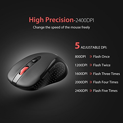 - 5 ADJUSTABLE CPI LEVEL. This wireless mouse owns 5 Adjustable DPI Switch(800, 1200, 1600, 2000, 2400), control your own speed freely. No need any driver, plug and play directly.