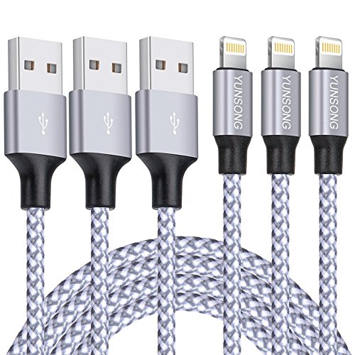 "Title: iPhone Charger, YUNSONG 3PACK (6FT) Nylon Braided Charging Cable Cord Lightning to USB Cable Charger Compatible with iPhone 8 8 Plus X 7 7Plus 6s 6sPlus 6 6Plus 5 5s 5c SE iPad iPod & More (Silver)