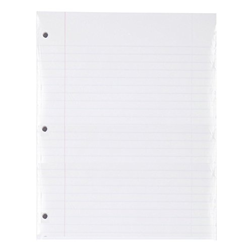 White filler paper is three-hole punched and ready to insert into standard ring binders. Each 15 lb. sheet is legal/wide-ruled with 11/32" line spacings and a red margin line on the left. Heavyweight stock makes this paper extra durable so it will not rip out of binders.