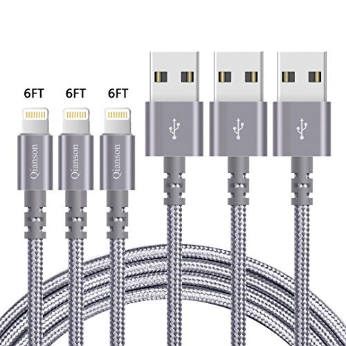 "Title: Lightning Cable 3 Pack 6 ft Nylon Braided Charging Cable Cord with Compatible for iPhone 7 Plus/7/6 Plus/6S/6S Plus/6 Plus/6 /5S/5C/5,iPad air/air 2,iPad mini/mini 2 and more(Gray)