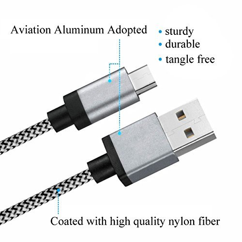 "Title: Micro USB Cable,[10ft3Pack] by Ailun,High Speed 2.0 USB A Male to Micro USB Sync & Charging Nylon Braided Cable for Smartphone&Tablets[Silver&blackwhite]
