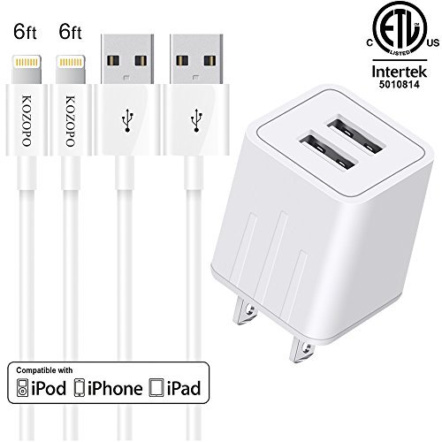"Title: iPhone Charger, KOZOPO Fast Charging Portable Home 2 Port Travel Wall Charger With 6FT (2-Pack) Long Durable 8 Pin Lightning to USB Cable Charging Cord for iPhone X/8/7/Plus/6/6S/5S/iPad Mini/iPod