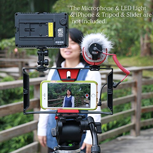 Smartphone Video Rig,Ulanzi iPhone Filmmaking Case Way to create fun videos!! If you love taking videos and share with your friends and family. If you love doing professional high quality videos by using your smartphones. If you love taking time lapse and slow motion videos by using your iPhone. It is a must have for you. Great product for casual film makers With 2 standard shoe mount ,You can get led Video Light and Microphone attachments with your smartphone. With 3 Universal 1/4-20 mount tread ,you can mount this rig with any tripod, slider or dollys. A Real Smoothie A must-have accessory for anyone wanting to improve their filmmaking skills with a phone that shoots better images than many high end cameras. You can mount the Rig on any tripod but if you go handheld, it allows you to capture relatively smooth shots. Compatible with Most Smartphones from 4 inch to 7 inch Screen What is in the box? 1x Ulanzi Smartphone Video Rig