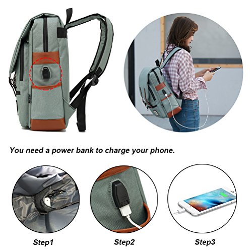- Practical & fashionable: Vintage chic design backpack, padded adjustable shoulder straps make it comfortable to carry; external USB with built-in charging cable offer a convenient charging.
